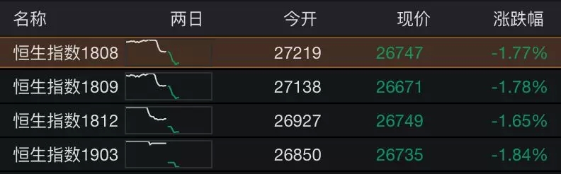 香港恒指期货大跌(截止8.15 21:00)