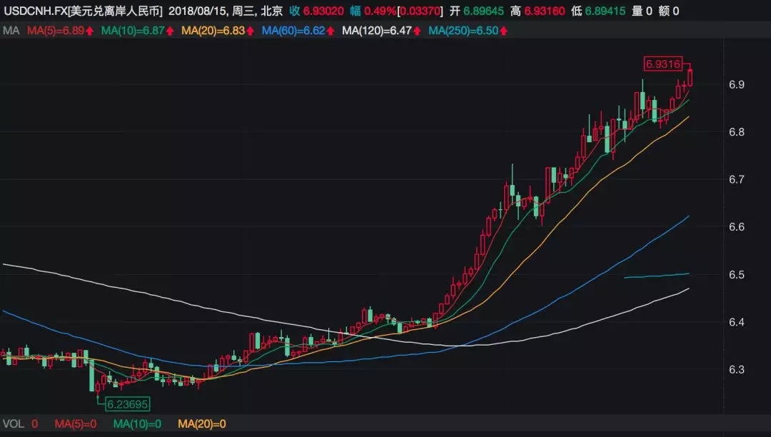 最后,顺手贴一张离岸人民币的最新汇率,已经跌破6.93。不多解释,已经说过好多次了。
