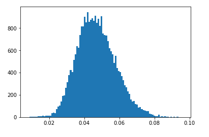 目前发现的一个问题:一幅图中被标记的像素点太少了。下面两张图为train-evaluate样本和test样本中值为1的像素点占总像素点(128×128=16384)比重的分布。
