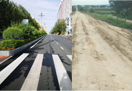 (桦南县至今仍在使用的乡村公路和新铺设柏油路对比图)