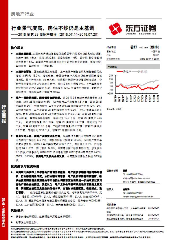 20180722-东方证券-房地产行业2018年第29周地产周报:行业景气度高,房住不炒仍是主基调.pdf