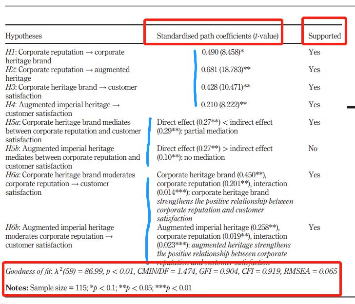 图中Corporate reputation可以视为A,Consumer satisfaction可以视为B,Augmented imperial role identity可以视为中介变量C,Corperate heritage brand可以视为调节变量D。