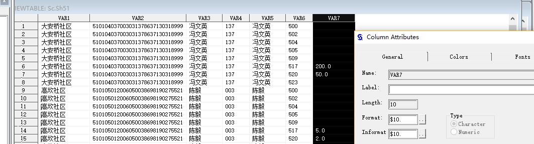 2127170375 发表于 2018-8-20 15:17 我的数据集中VAR7500一列是数字字符,在列属性中显示的为character,我想把它改为numeric格式然后进行列求和 ...