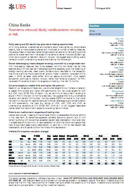 sfbzx 发表于 2018-8-22 08:28 瑞银-中国银行业:短期可能反弹;中期存在风险-2018.8.13-42页