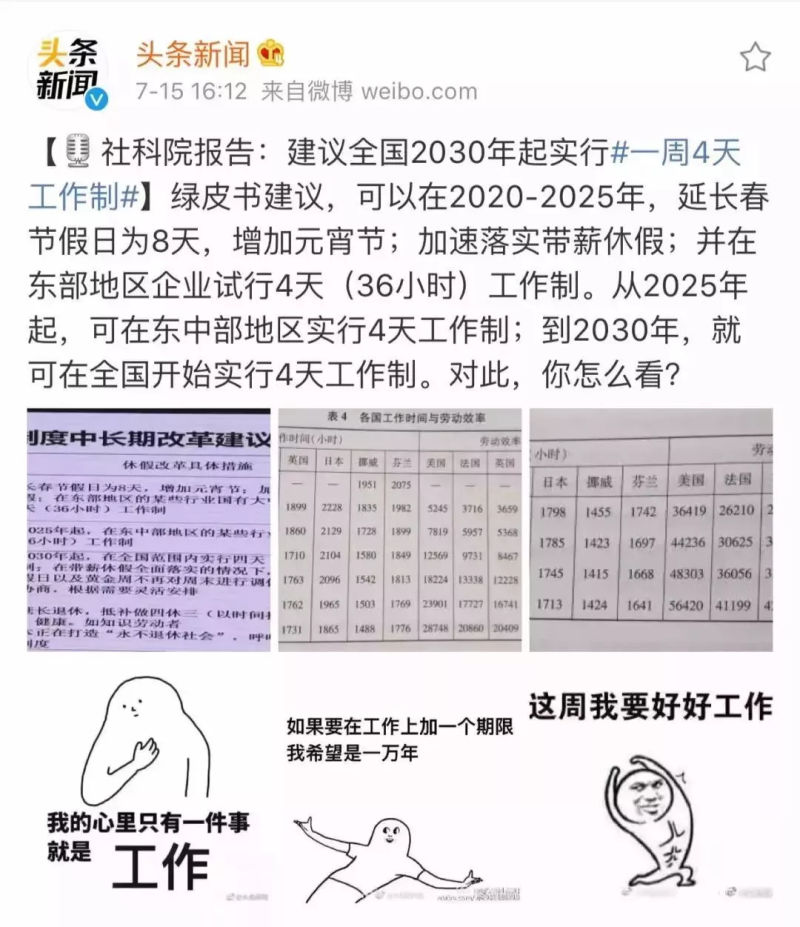 自2030年起,在全国范围内实行四天(36小时)工作制。