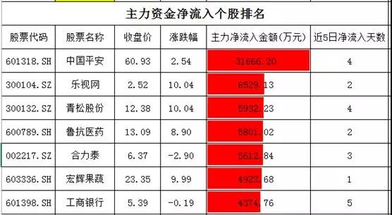 麟龙投顾指出,个股资金净流入方面,中国平安净流入超过3.1亿元,其余个股均没有超过亿元,乐视网、青松股份和宏辉果蔬涨停且均有不同金额的资金净流入。