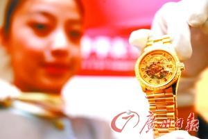 最名贵的全金满天星镶钻腕表,售价达9.98万元。记者王燕 摄