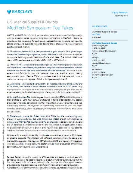 巴克莱-美股-医疗用品与设备行业-医疗科技研讨会关键要点-2018.1.19-29页.pdf