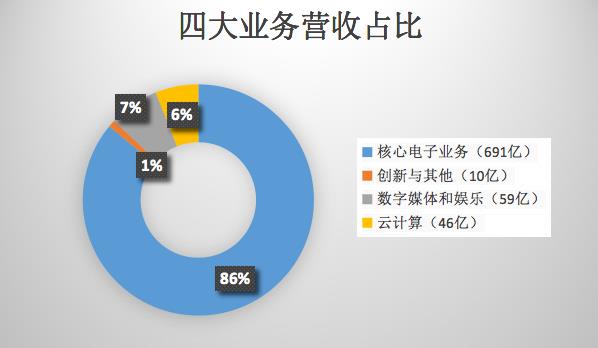 增速快依然来自于核心电商的拉动。本季度,阿里核心电商业务的营收为691亿元,占营收总额的86%,同比增长61%。而此前,电商的占比约为81%。