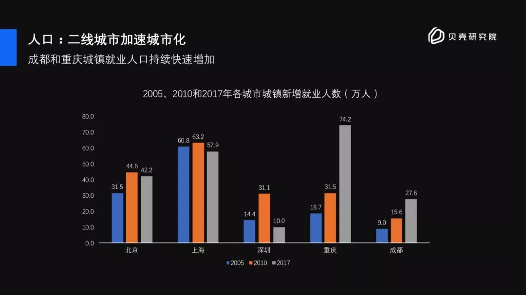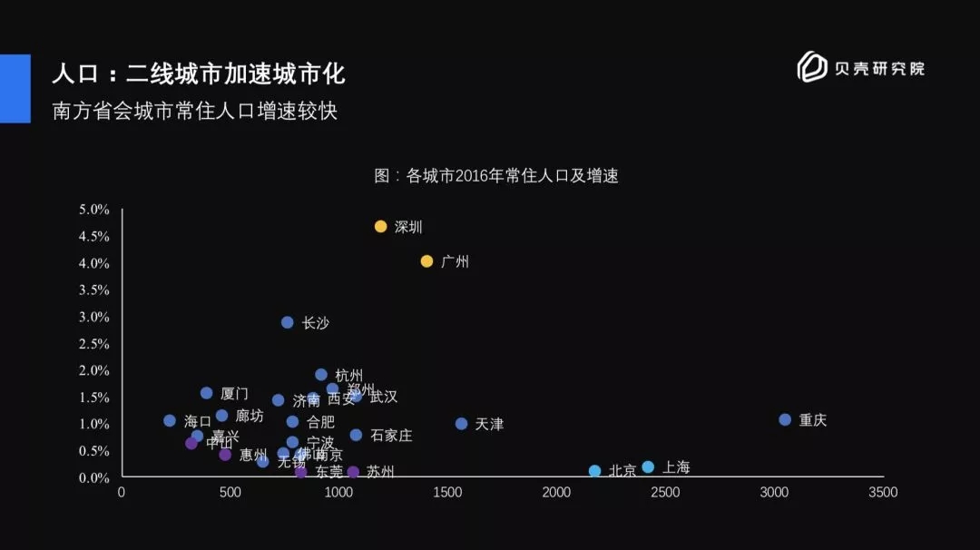 而目前中国现在进入到经济转型阶段,一线和二线城市均处于产业结构调整状态,从当前一线城市的城市规划看处于人口管控,那么二线城市将作为未来吸纳和承接人口和人才的主战场。