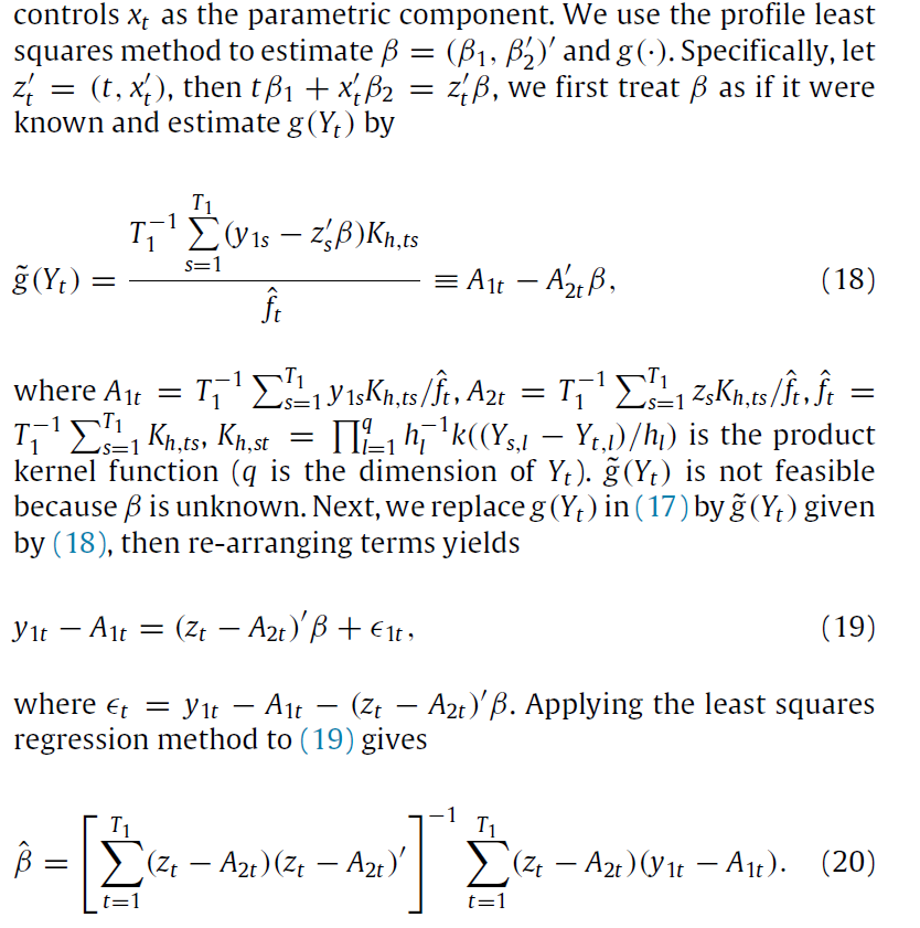 到原来的情况下,Hsiao 等(2012)方法依赖于误差项的条件均值是潜在因素的线性函数的关键假设(假设六);否则无法建立OLS估计的一致性。 通过允许条件均值具有半参数设置,Ouyang, Peng (2015)放宽了这个假设。他们表明,在相当一般的条件下,如Robinson(1988)和Fe和Li(1999),一个可一致地估计的反事实可揭示真正的处理效应。