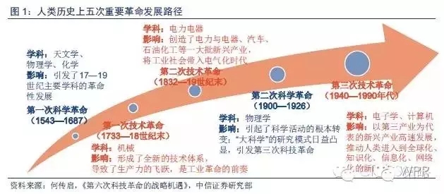 经验表明:历史上每一次的社会重大飞跃都伴随着科技革命。科技革命包括两个范畴:科学革命和技术革命。科学革命是技术革命的前提,但是科学革命不一定会带来产业变革,技术革命是科学革命到产业革命的必经之路。