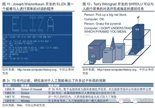 这个阶段的起步期人工智能是以“计算机不断解决以往人类从没设想过其能解决的问题”为特征的,解文字题、证明定理甚至是学习语言。正是这样的超预期激发了人们对于人工智能的畅想,对人工智能做出了大量乐观的预测。