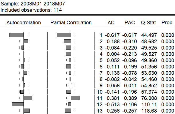 1阶12步差分后的自相关图
