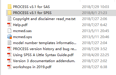 很多人反应官网下载不下来,我也是下载了多次才成功下载了process v3.1,特放在论坛,以便大家下载。里面包括PROCESS v3.1 for SAS和PROCESS v3.1 for SPSS。