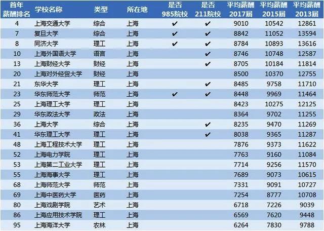 上海高校毕业生薪酬排行: