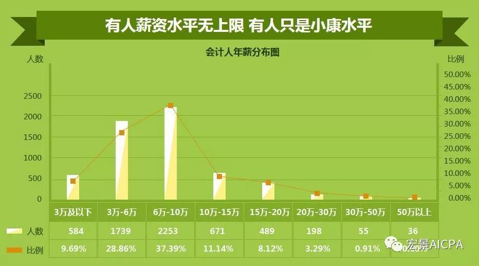 如上图的调查数据显示,在国内,会计的薪资水平浮动较大,会计薪酬分布区域最多的是6万-10万/年,但年薪10万以下的员工也不少。