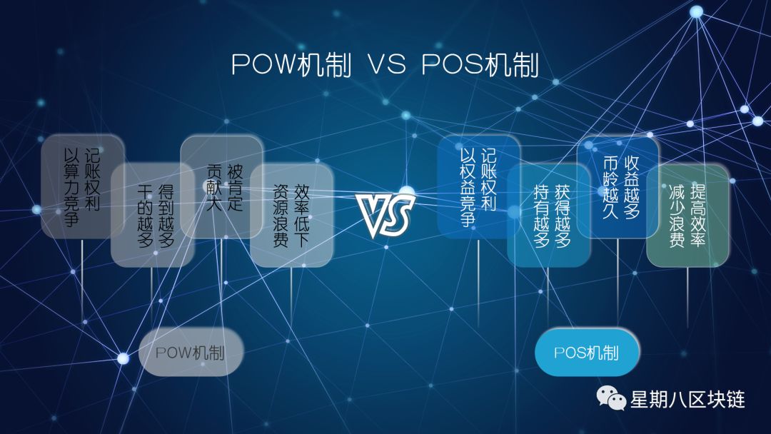 POS是proof of stake的缩写,意为权益证明机制。POS要求证明人提供一定数量加密货币的所有权。用股票的方式来说,就是谁拿的股票越多,那么谁的话语权就越大。核心思想是根据持有的财产以及持有财产时间来作为随机分配记账权的标准。在这里我们就需要提出一个币龄的概念。你拥有一个币一天,就会带来一天的币龄。你的币龄决定了挖矿的收益,而不是通过大量的无意义的计算机运算来获得。