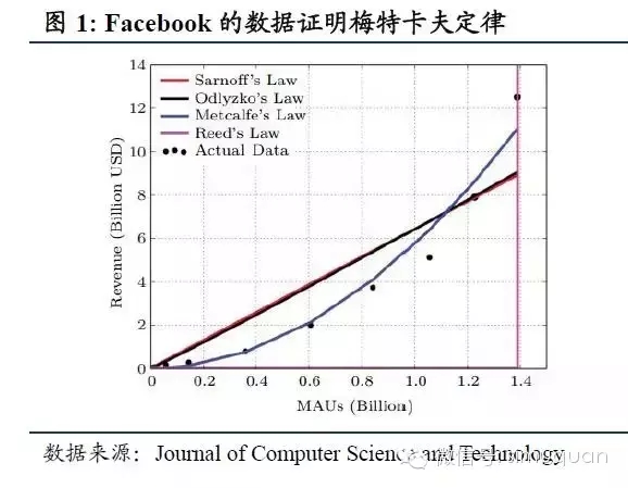 2.梅特卡夫定律告诉我们互联网企业的价值与用户数的平方成正比,用户数越多,企业的价值越大。Facebook和腾讯的营业收入、MAU已经验证了梅特卡夫定律的有效性。