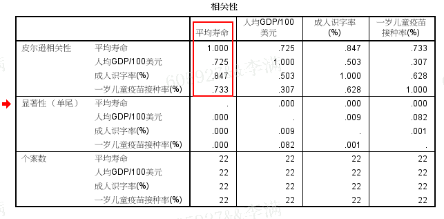 在上面的相关系数矩阵里,y(平均寿命)为被解释变量,x1(人均GDP)、x2(成人识字率)、x3(一岁儿童疫苗接种率)为自变量,相关系数最高的为x2,所以先把x2纳入方程,建立一元线性回归方程;然后