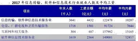 信息传输、软件和信息技术行业的平均工资较高,工资总额较大,新政策的出台将增大行业社会保险费的支出规模。根据《中国人口和就业统计年鉴2017》,2017年信息传输、软件和信息技术服务业共有364万从业人员,平均年薪达到12.24万元,工资总额达4432亿元。