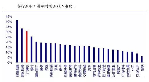 计算机行业中的企业职工薪酬小企业占应收31%,位于全行业高位。