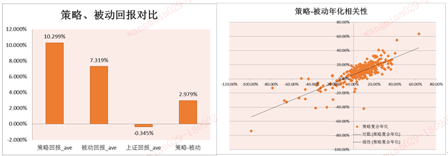 一、 策略回报均值高于被动回报,与被动回报具有相关性,同时沪深300相对上证指数具有选股优势