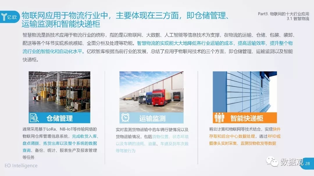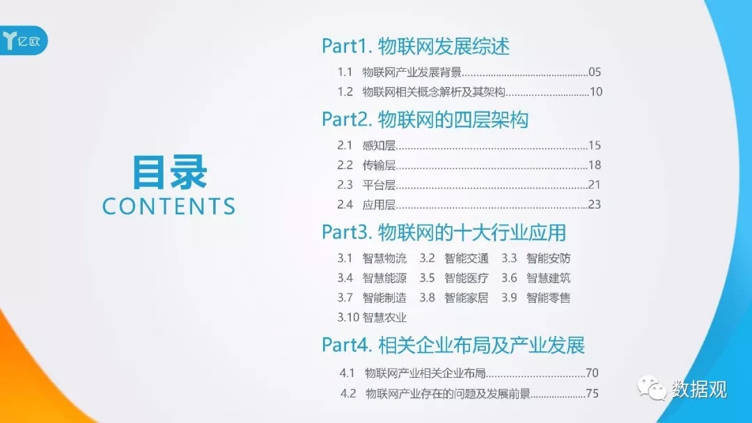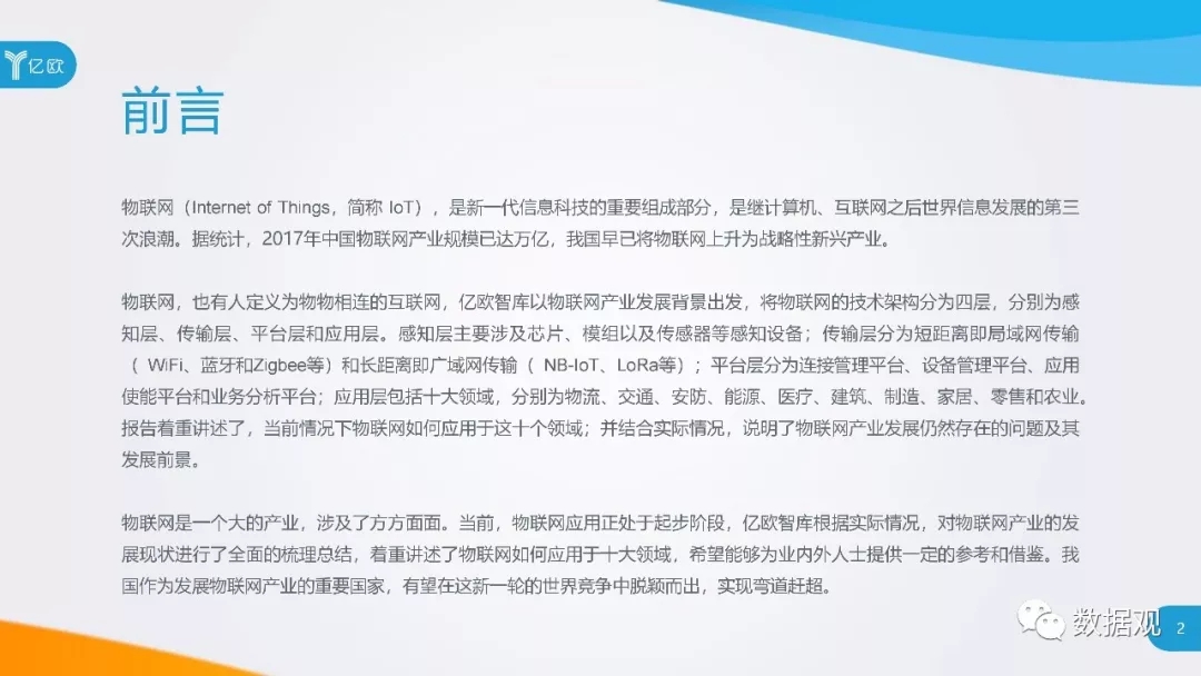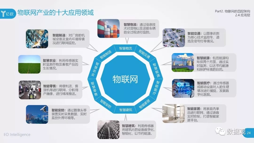 报告梳理总结并着重讲述了物联网技术的十大应用领域,分别为物流、交通、安防、能源、医疗、建筑、制造、家居、零售和农业;并结合实际情况,说明了物联网产业发展仍然存在的问题及其发展前景。