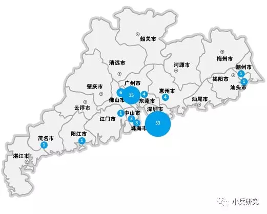 从广东地区看,深圳市的物联网企业以33个居首位,广州市以15个次之,而周边佛山、东莞、惠州等分别以6、4、4次之。整体来看,广东省物联网产业IPO具有显著的区域集中特性。