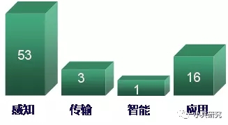 从分层来看,广东地区大多数物联网企业依然是以感知层为主,感知层企业数量53个,应用层企业数量16个,传输层企业3个,智能层企业1个。