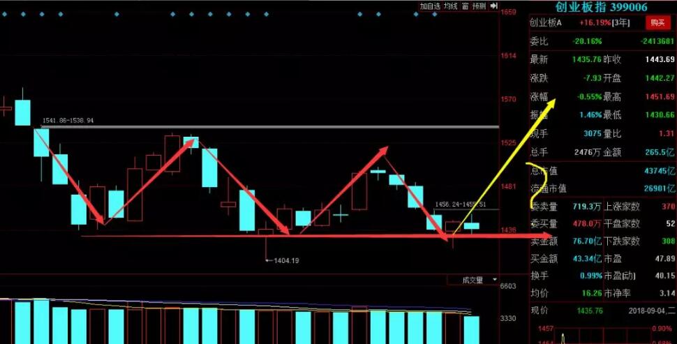 创业目前是一个双针探底或者说是多重底的一个走势,1430这附近应该不会轻易跌破,逢低仍然可以吸纳。