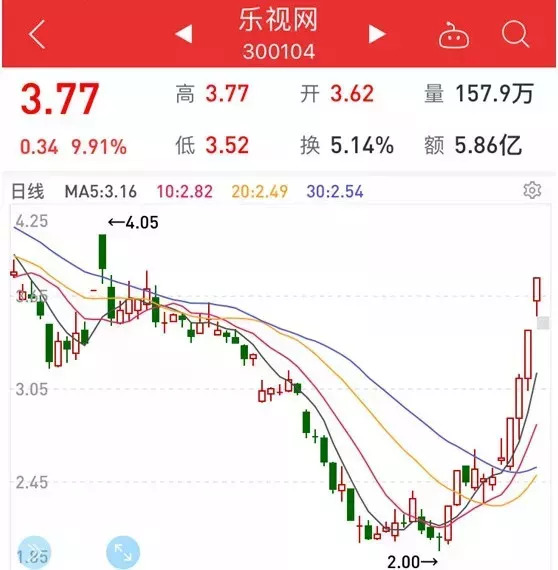 因为陷入流动性危机,乐视网这几年股价轰塌。最近却逆势出现连续涨停走势,11个交易日暴涨81.25%。