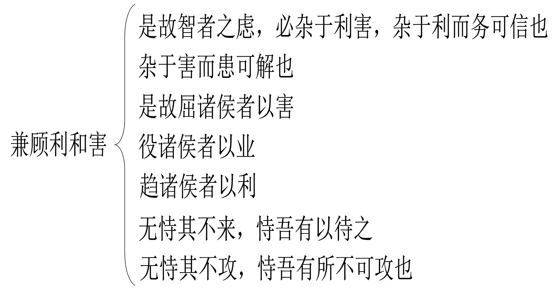【原文】是故智者之虑,必杂于利害。杂于利,而务可信也;杂于害,而患可解也。是故屈诸侯者以害,役诸侯者以业,趋诸侯者以利。故用兵之法,无恃其不来,恃吾有以待也;无恃其不攻,恃吾有所不可攻也。
