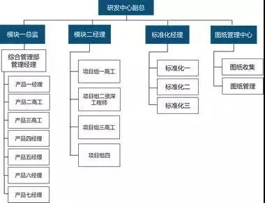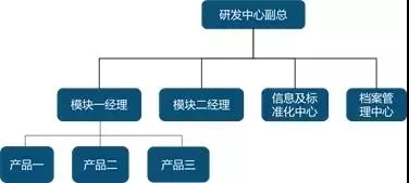 图3和图4为某家公司变革期研发系统组织架构调整前后的情况,这家企业变革的目的是快速响应,将原来4-5级的架构调整为2-3级,减少信息传递的层级,提高信息传递的效率。