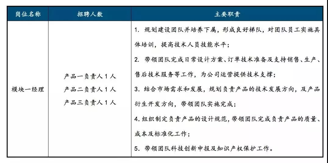 表1为上述企业研发组织架构调整后确定的竞聘岗位、人数和主要职责。
