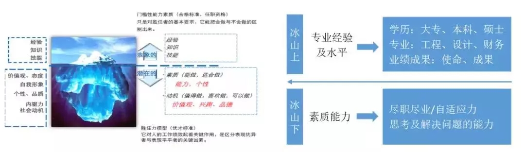 冰山模型最早是由美国哈佛大学教授麦克利兰博士提出的,包括冰山上与冰山下两个部分,精准画像就是找到竞聘岗位所对应的冰山上与冰山下的胜任条件(见图5)。