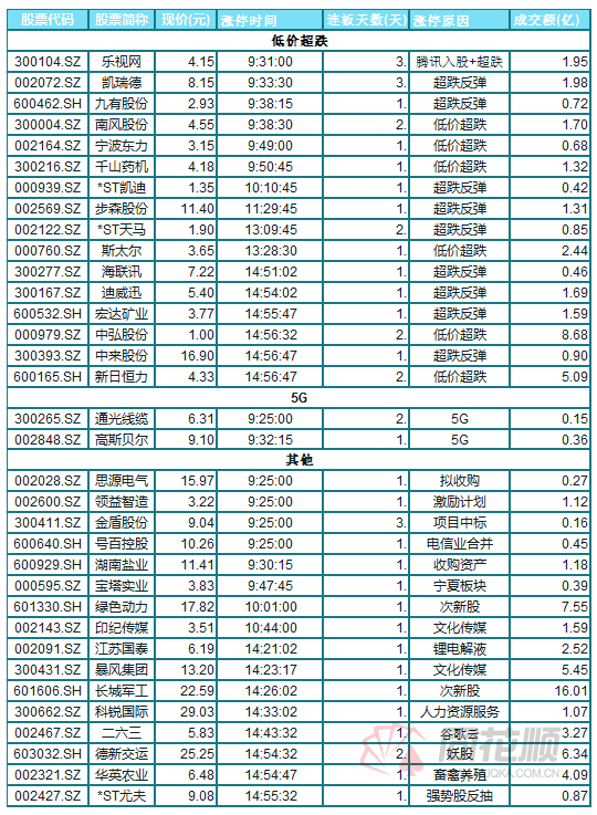 首先今天的超跌和退市风险题材板块在乐视网(300104)的带领下持续走强,板块内凯瑞德(002072)、中弘股份(000979)、暴风集团、新日恒力等多股涨停;