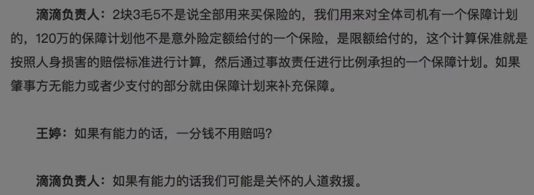 滴滴公司只买了“代驾责任险”,保障的是听单或接单过程中给他人造成的伤害,意外险是没有买的。