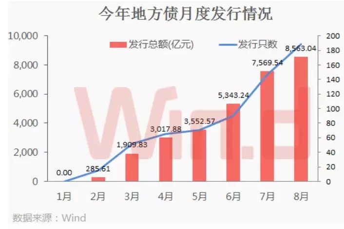 根据财政部数据,今年上半年地方政府新增债券发行额累计为3328亿元,7月份单月发债额达到4614亿元,超过上半年发债总额。Wind数据显示,8月份单月这一数据为5920亿元,超过7月,下半年新增债券发行提速明显。据此估算,剩余约8000亿元新增债券将密集在9月发行。