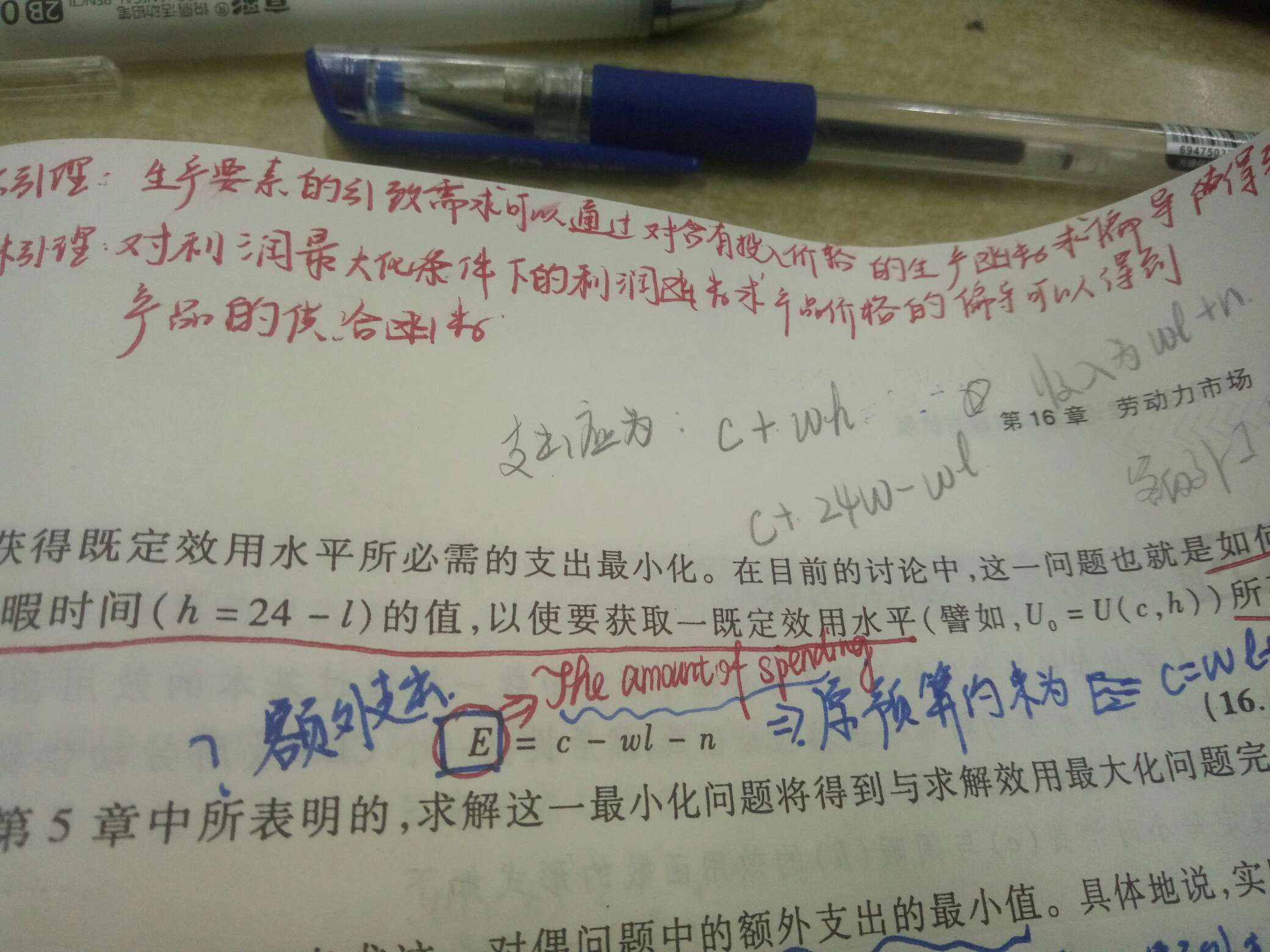 中文版中E翻译为额外支出,但是原版就只是the amount of spending,个人感觉就是纯粹的支出啊,没有体现额外支出的意思,c表示闲暇以外的消费,wl劳动收入,n非劳动收入。