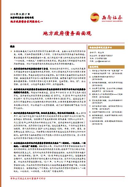 sfbzx 发表于 2018-9-7 12:19 西南证券-地方ZF债务系列报告之一_地方ZF债务面面观-20180907-22页