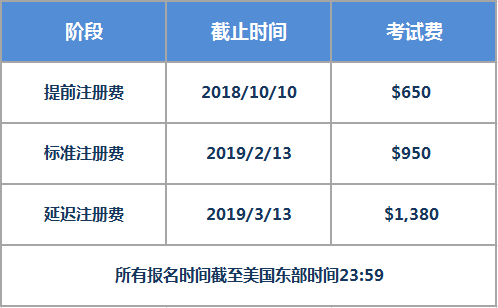1、注册费仅需在首次报名一级考试时交纳 $450,重考和报考高级别考试无需支付。