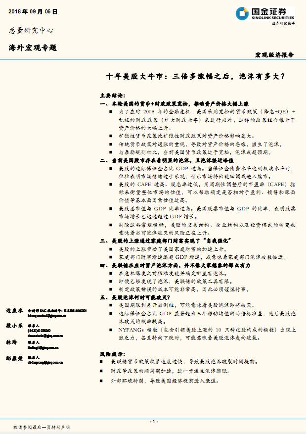 国金证券-十年美股大牛市,三倍多涨幅之后,泡沫有多大?-20180906-16页