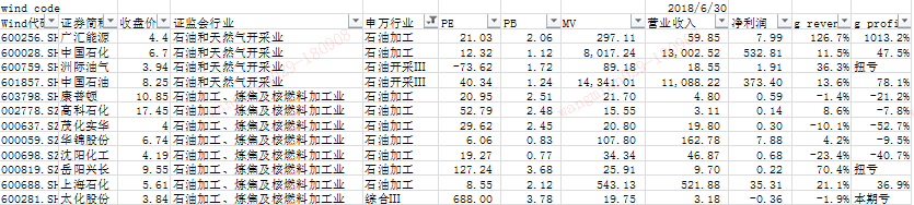 我们发现,“石油&天然气行业”表现抢眼,而且在经历了18Q1的触底后反弹,贡献度在Q2得以提升。接下来我们就来看看,这个行业里都有哪些个股~