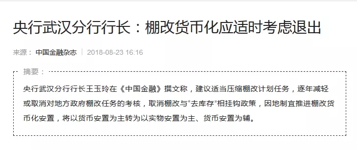8月,央行武汉分行行长王玉玲在文章中的态度,我们可以判断接下来湖北省棚改货币化政策力度会削弱甚至取消。