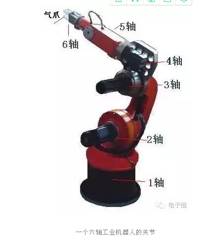 这种带有六个关节的工业机器人与人类的手臂极为相似,它具有相当于肩膀、肘部和腕部的部位。它的“肩膀”通常安装在一个固定的基座结构(而不是移动的身体)上。这种类型的机器人有六个自由度,也就是说,它能向六个不同的方向转动。与之相比,人的手臂有七个自由度。