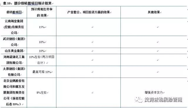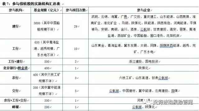 1、目前48家企业的59个案例中有一些缺乏投资性质和投资用途的信息,有些案例即使提到是股权融资,但真股假股难辨,不过我们仍能找到8个金融机构明确入股子公司或优质资产的案例,这些案例包括:武钢建行项目、云锡建行项目、山东能源建行项目、同煤工行项目、陕煤化北京银行项目、南钢建行项目、盐湖股份建行项目、西部矿业建行项目。