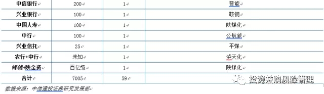 资金来源以吸纳社会资本为主。目前许多债转股项目,主要通过设立基金进行债转股,其资金来源一般由金融机构和债转股企业共同出资,而银行资金多为社会资本募集而来。建行在武钢、重庆建工、山东能源等早期项目中明确资金来源于社会募集。在云锡的项目中,建行表示会出一部分资本金,但主要还是向社会募集资金,如通过险资、养老金、券商以及银行理财。在后续项目以及非建行的其他银行的债转股项目中,大多未明确说明资金来源,只表示通过设立基金进行债转股,仅工行在太钢项目中表示将采取资管计划、建行在南钢的项目中表示通过设立基金、信托计划或资管计划进行增资。