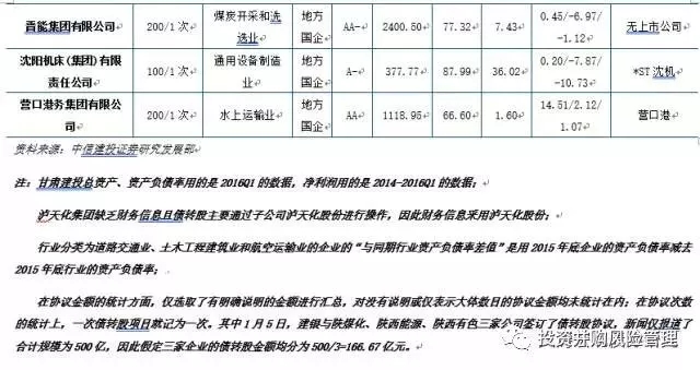 地方政府积极推动当地支柱企业进行债转股。在这轮债转股中,从地方政府紧随国务院颁布的推动债转股的地方政策,到地方政府同企业、银行一起签署协议,可以看到地方政府的参与积极性较高。在几个地方大单中,都能够看见政府的推动。陕西省政府与建行签署了有关陕煤化、陕西能源、陕西有色在内的500亿的项目,河南省政府推动了建行与安钢集团、河南能源化工集团、平煤神马集团签订了350亿项目,并在后续的政府文件中督促加快推进已签订协议项目落地。甘肃省也推动其省内四家重点支柱企业(金川、酒钢、公航旅、甘肃建投)与建行总行签署共计350亿协议。这些项目的推动过程和计划也相对明确。除了省政府、省国资委参与外,厦门海翼和泸天化都是由地级市政府出面签署的。这些企业都是地方的支柱性企业,一方面这些企业关乎到地方的税收和GDP,另一方面政府推动债转股能一定程度避免其破产或导致产业链上众多企业倒闭引发大规模失业和其他社会问题。