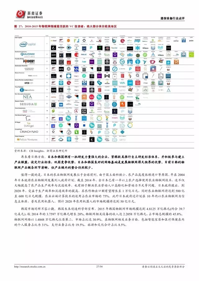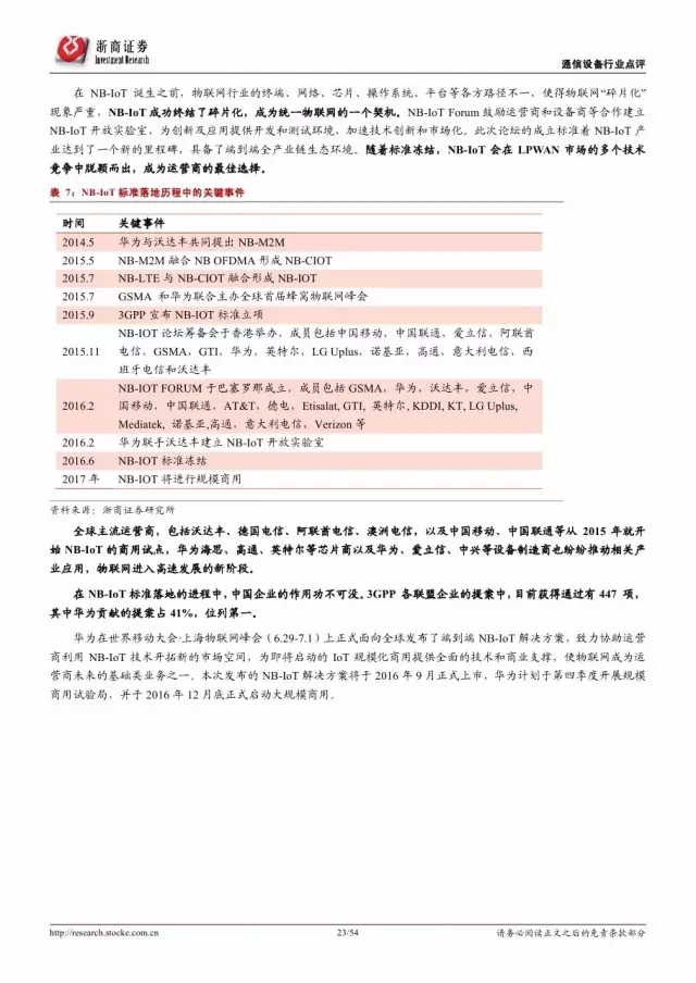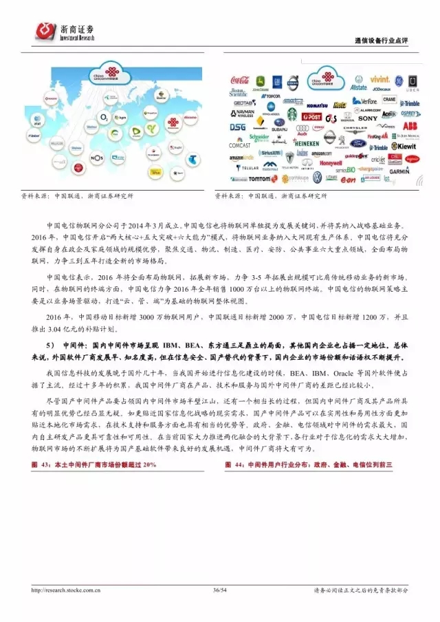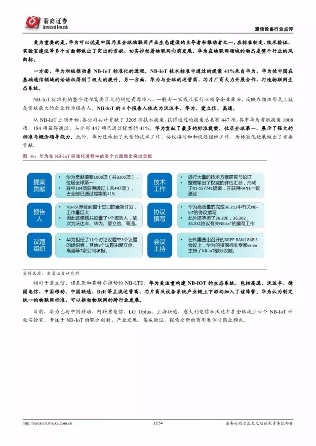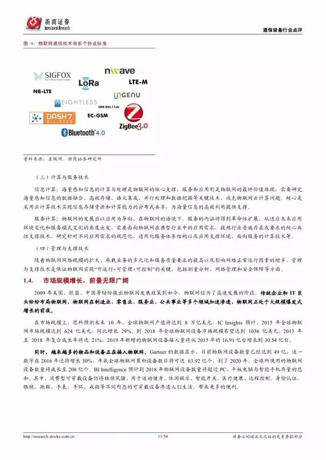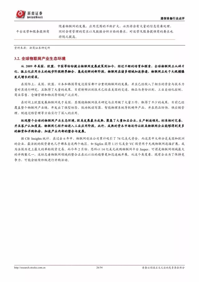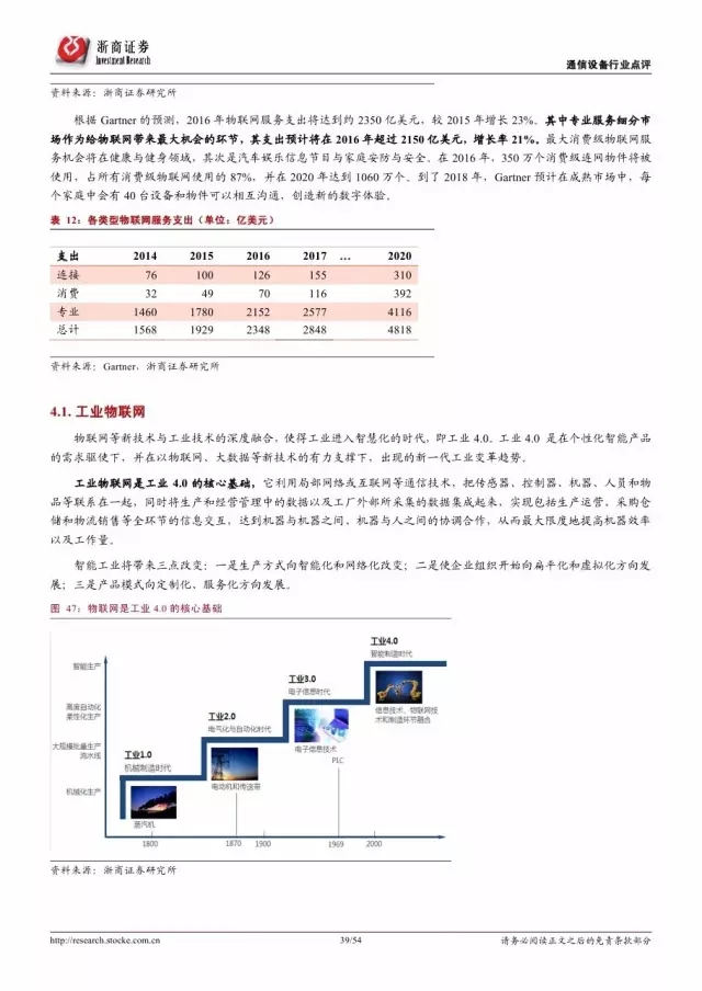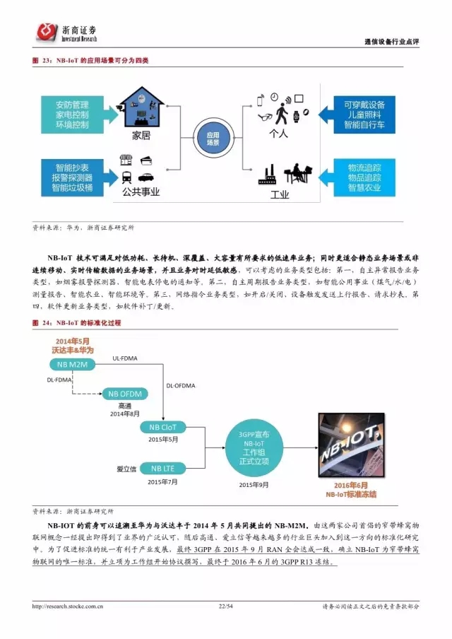 政府是推动物联网发展的主导因素。纵览全球,发展物联网已经成为世界各国的国家战略。 2016 年美国宣布投入 1.6 亿美元推动智慧城市计划,欧盟计划 2今年投入超过 1 亿欧元支持物联网重点领域。各巨头也积极布局物联网,建立产业联盟构建生态体系。技术层面, 5G 和 NB-IoT 的演进和商用将对物联网的发展起到重要的推进作用。